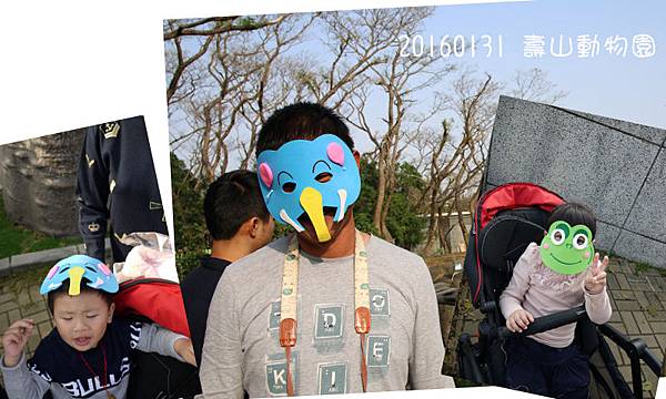 ↓老公不顧我跟婆婆反對很堅持要買的面具,還好有在動物園拍到照片,因為回家騎機車時候就飛掉了,一百塊也就沒啦XD