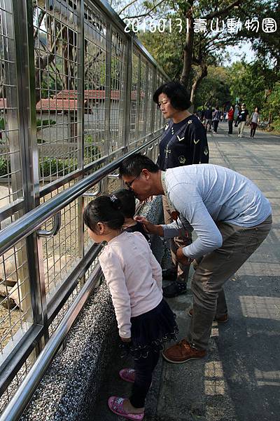 ↓全部的人好專注喔!在看甚麼呢?原來是在看一隻爬上欄杆的猩猩~